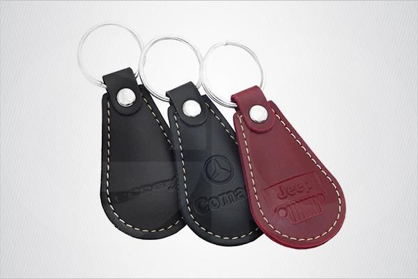 Chaveiro em couro sintético e argola. Medidas: 4x7cm. Uma gravação em baixo relevo já inclusa.